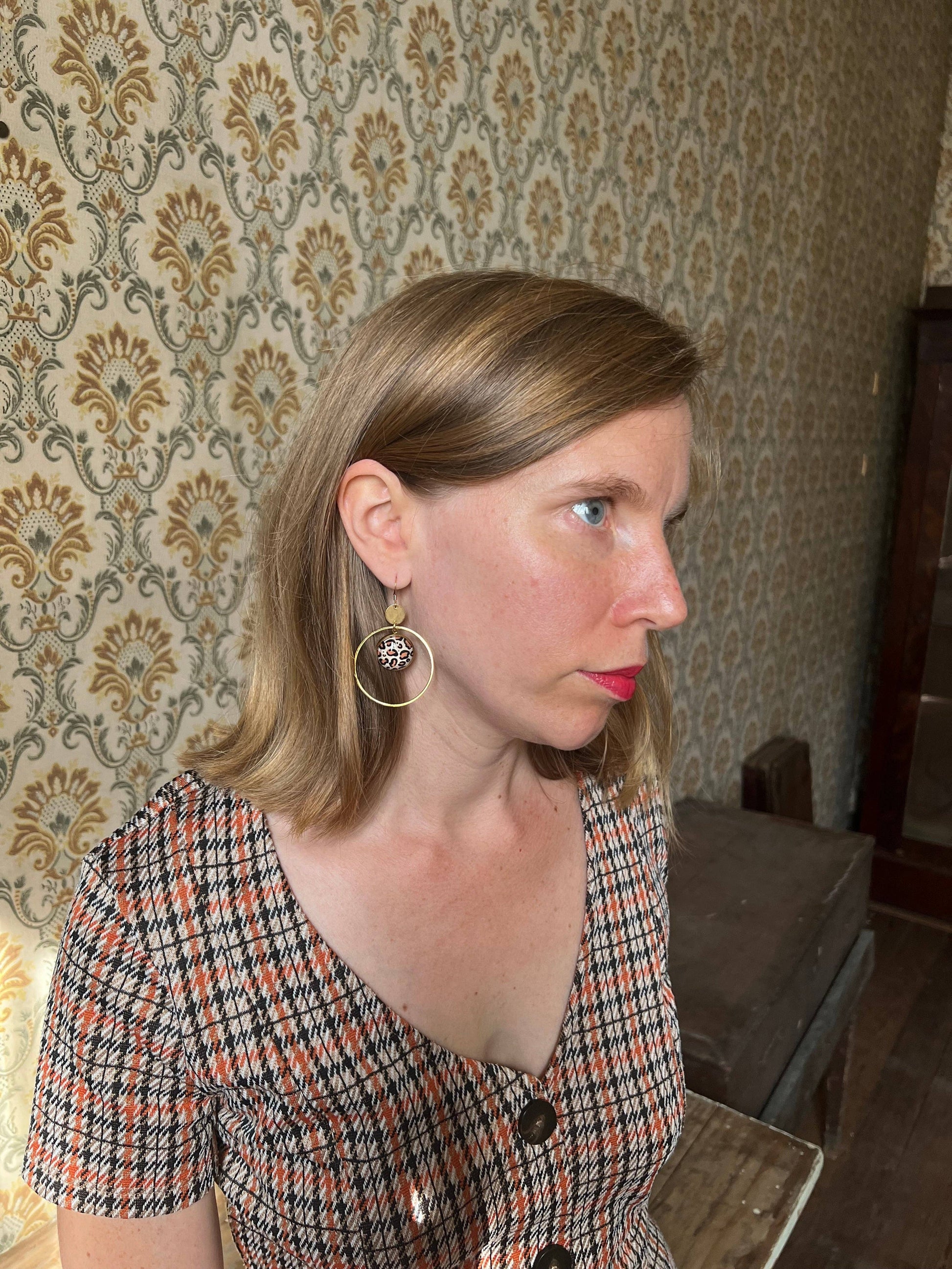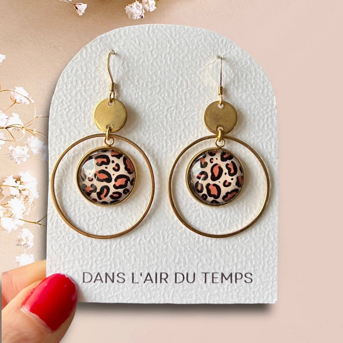 Ohrhänger Kreolen in Leooptik ♥ • MAßE: - Durchmesser des Rings: 30 mm - Durchmesser des Cabochons: 16 mm - Gesamtlänge: 55 mm • MATERIALIEN: - Goldfarbene Fassung (Edelstahl) - Hergestellt aus einem schönen, am Grafiktablett entworfenen Muster - Bild geschützt durch eine Harzschicht und einen Glascabochon - Nickelfrei