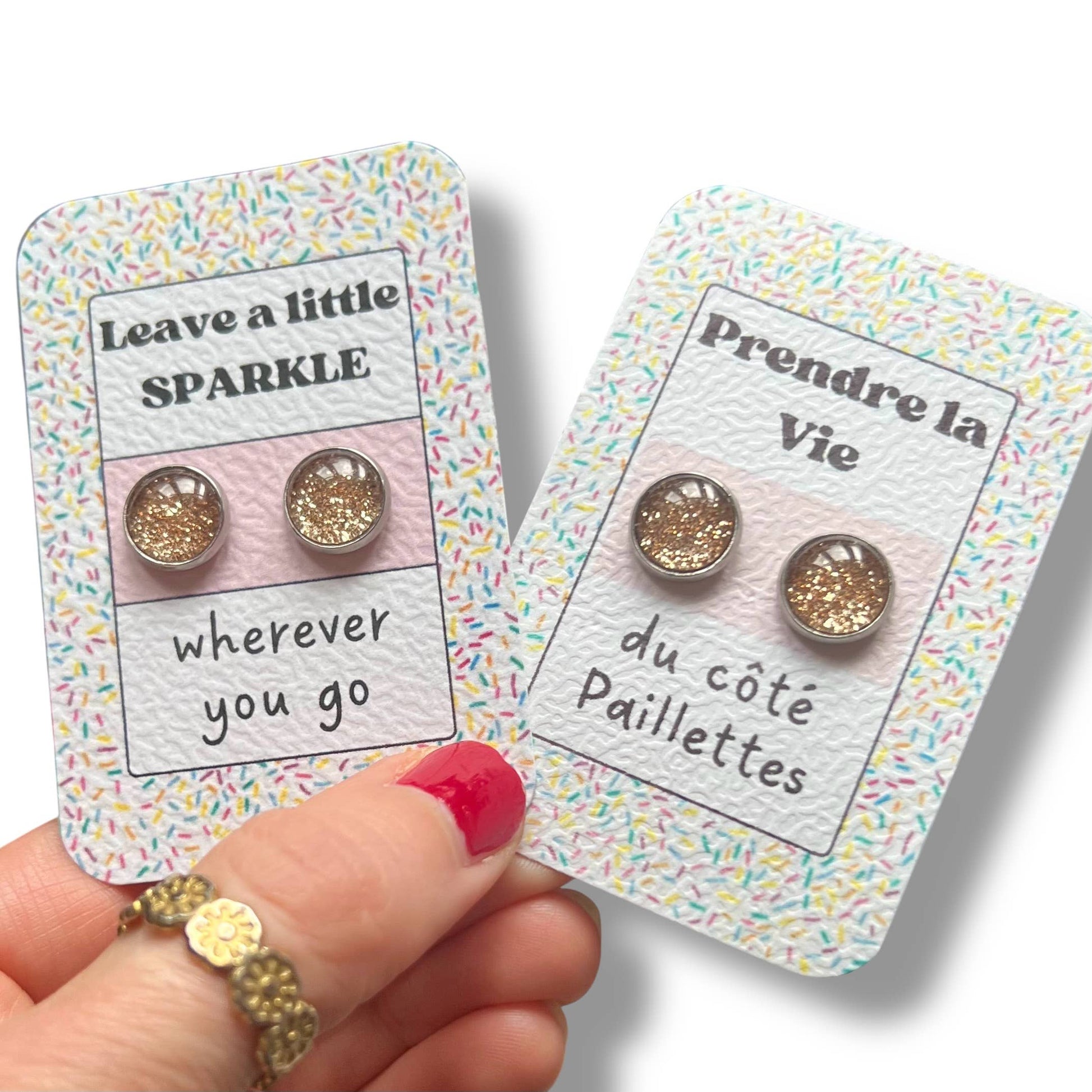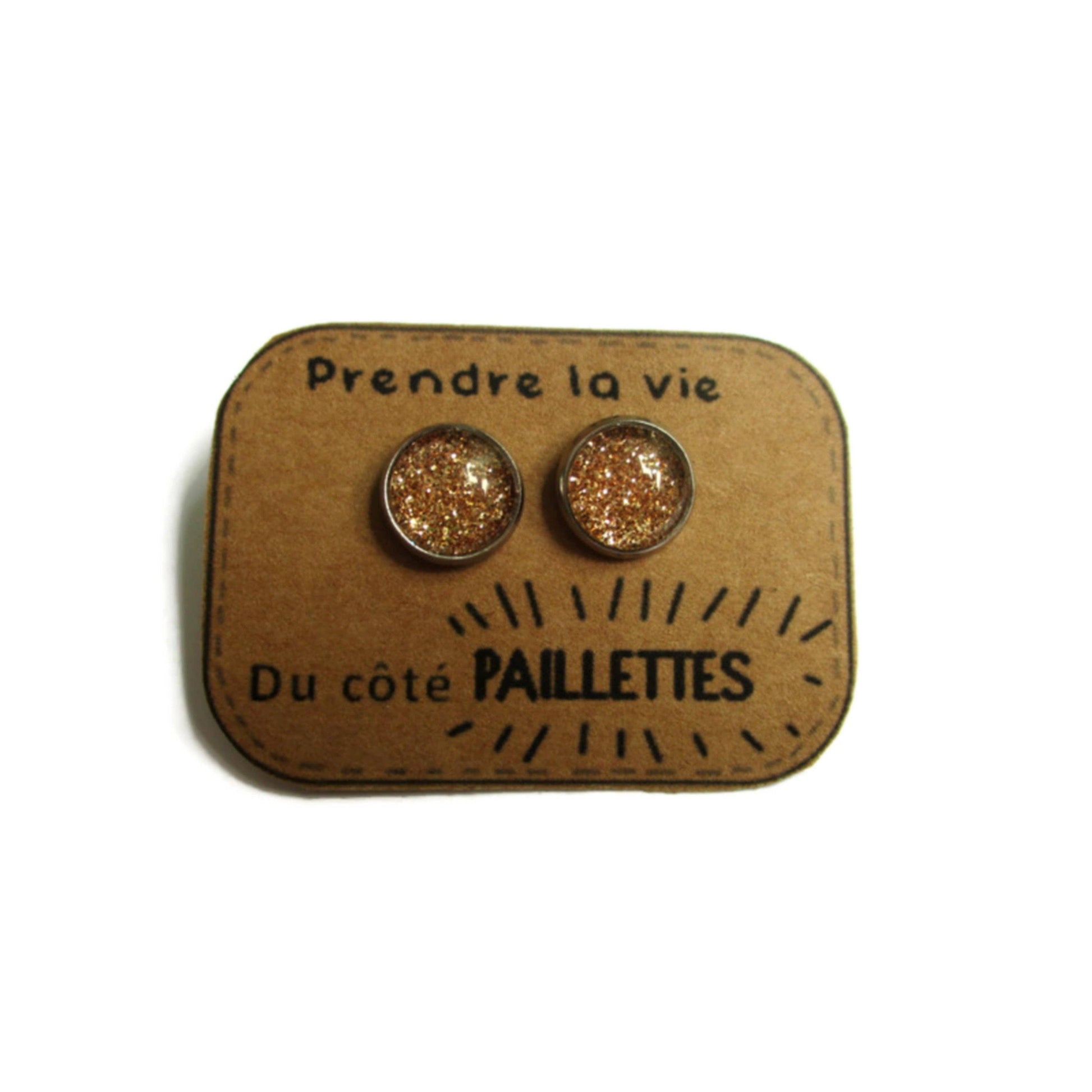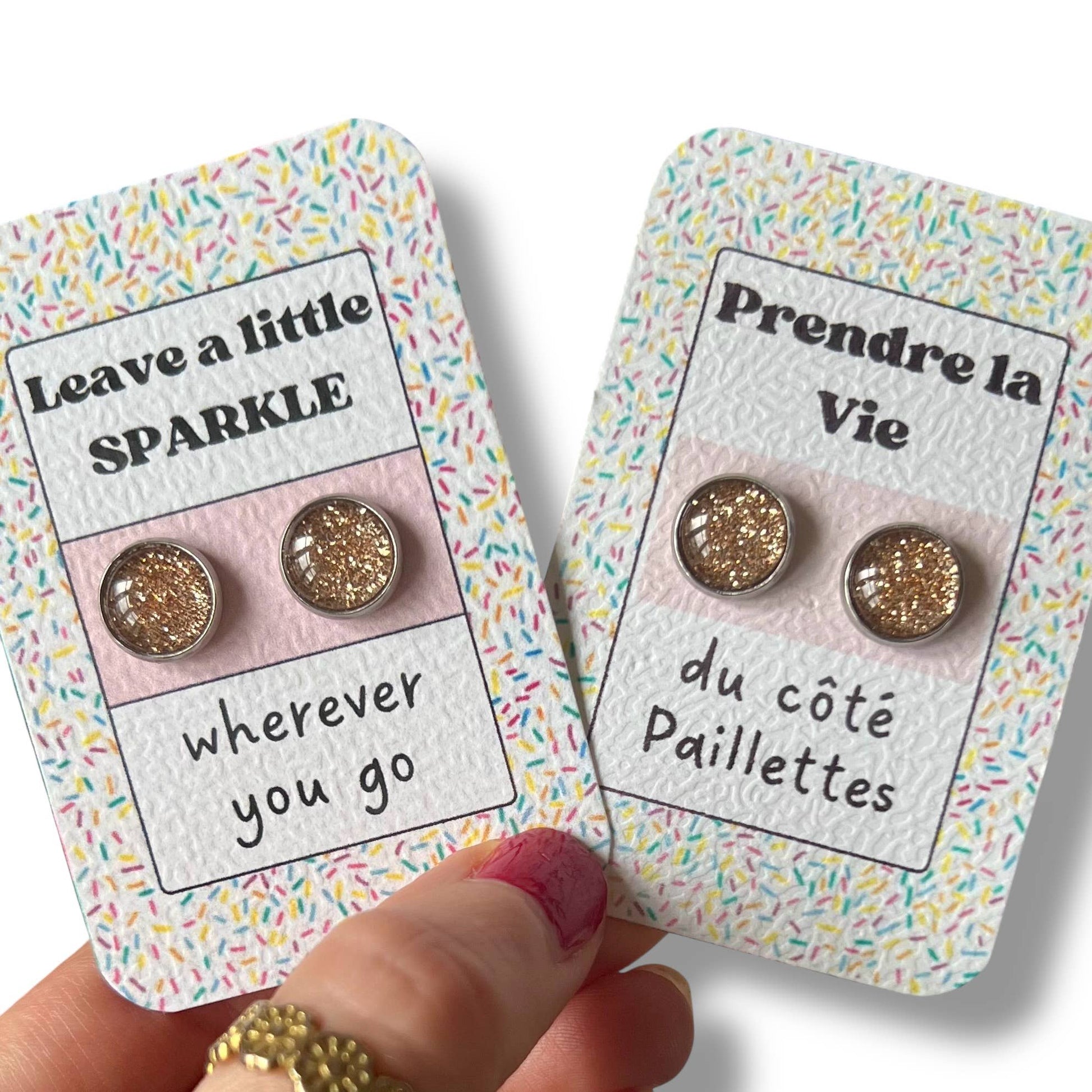 Goldene Glitzer-Ohrringe auf kleinem, handgefertigtem Kraftpapier ♥
