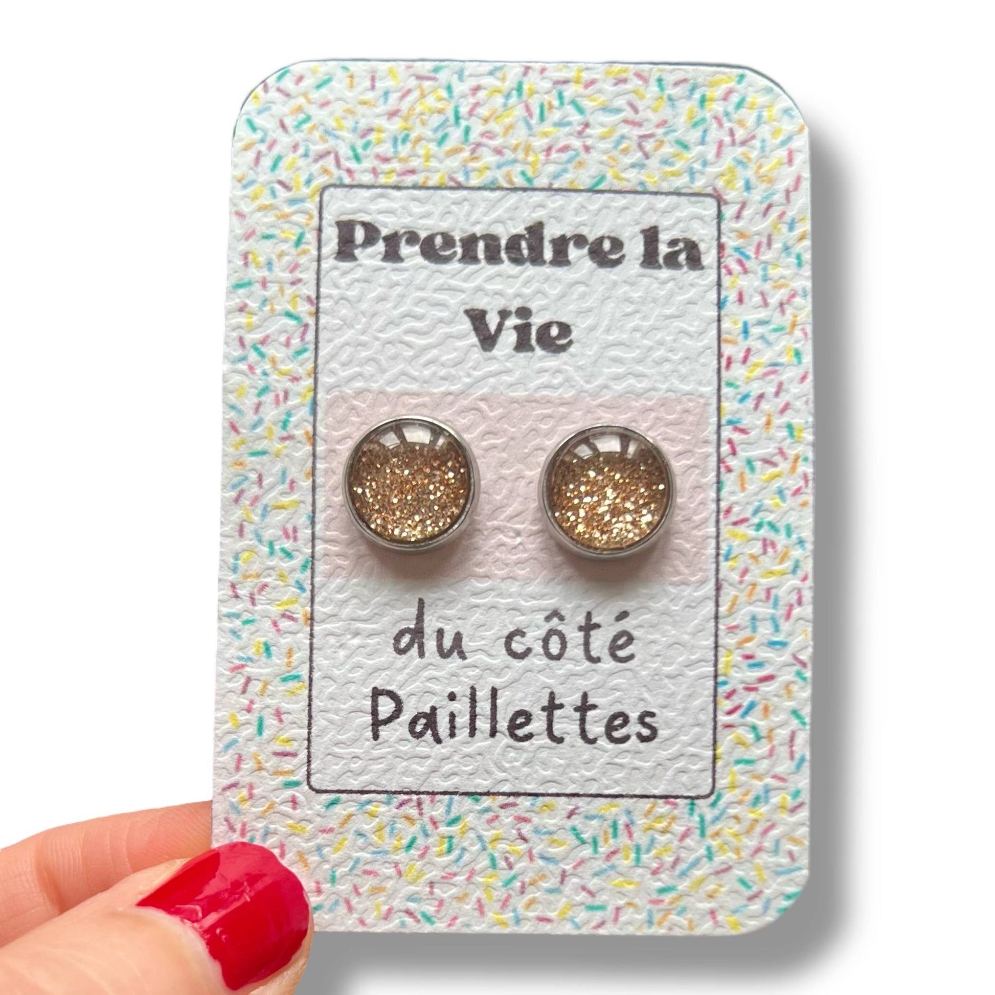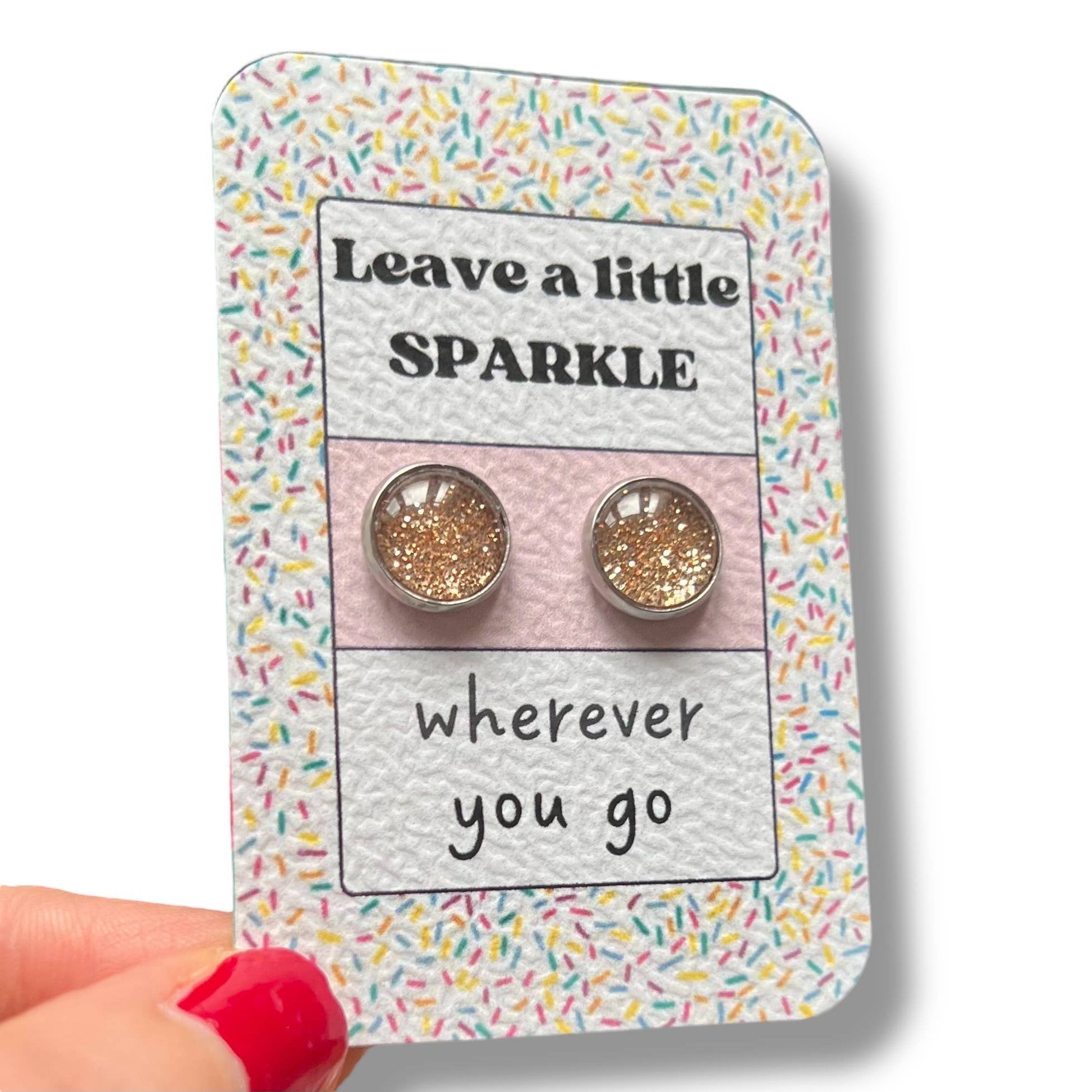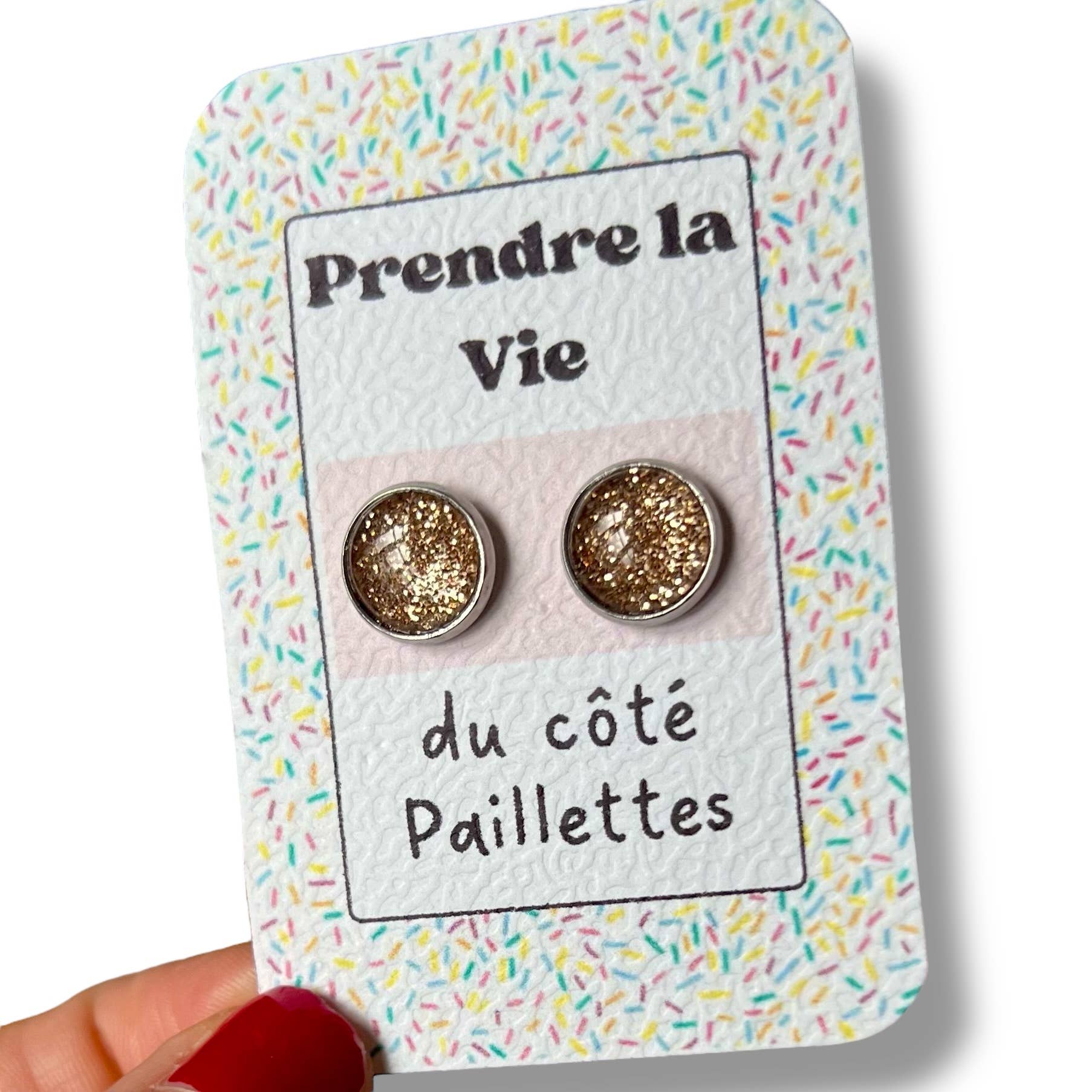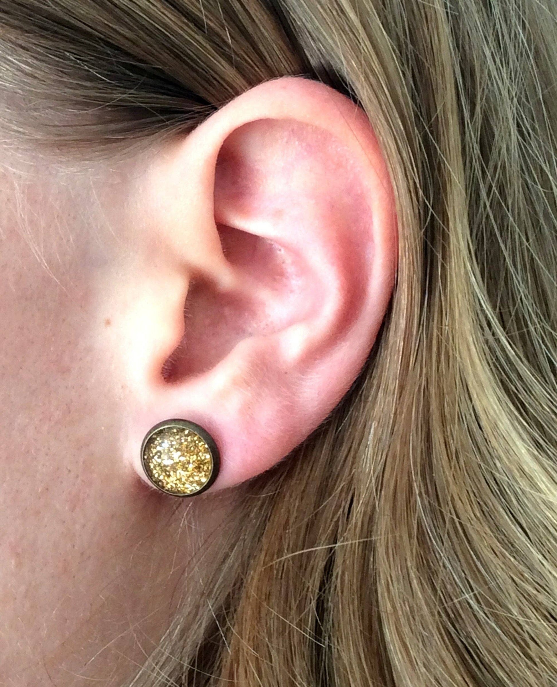Goldene Glitzer-Ohrringe auf kleinem, handgefertigtem Kraftpapier ♥