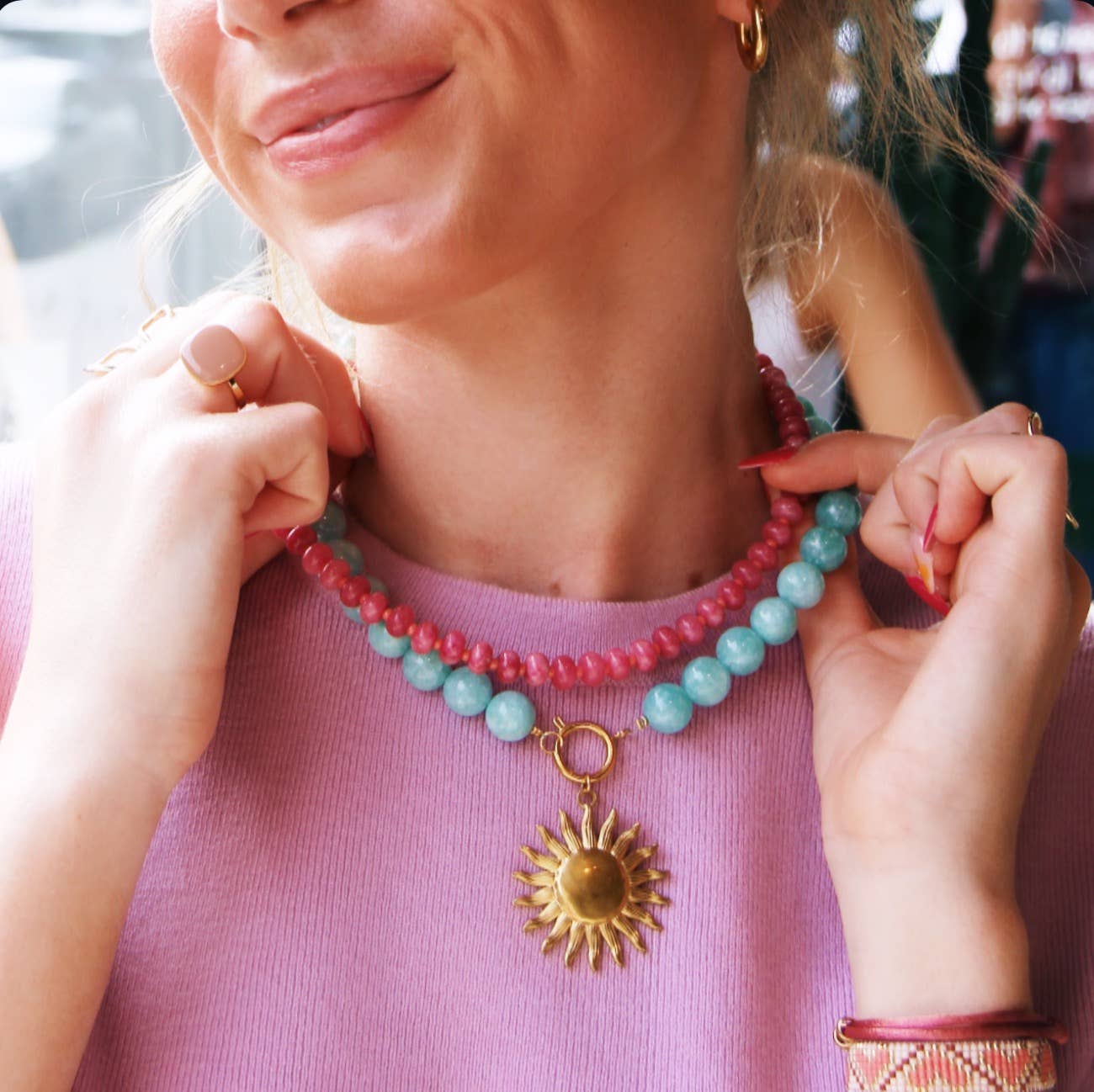 Heißer Artikel-Alarm! Perlen sind der Trend des Moments, und wir können es kaum erwarten, sie mit Ihnen zu teilen! Diese XL-Perlenkette ist ein Muss für Ihre Schmucksammlung. Dank der klobigen Perlen und leuchtenden Farben ergänzt diese Statement-Kette jedesOutfit. Tragen Sie sie solo und peppen Sie Ihren Look auf! - Diese Kette besteht aus 100% natürlichen Steinperlen - Der Verschluss besteht aus hochwertigem Edelstahl, sodass er nicht anläuft! - Die Kette ist 44 cm lang und nicht verstellbar - Der Verschluss hat einen Durchmesser von 1,4 cm