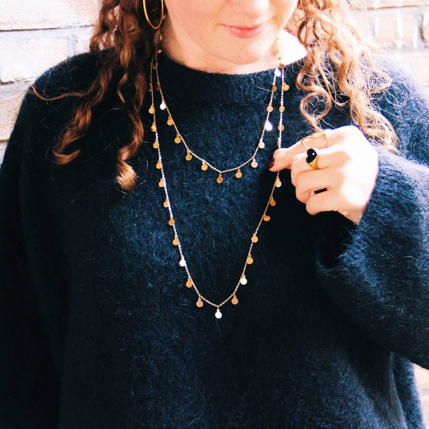 Diese lange Münzkette darf natürlich in deiner Sammlung nicht fehlen. Die Münzen und die Länge verleihen der Kette einen coolen Touch. Du bist auf der Suche nach einem Artikel, den du jeden Tag tragen kannst, der aber auch deinem Partyoutfit einen Schub verleiht?! Dann ist diese Halskette die perfekte Wahl! Hergestellt aus hochwertigem Edelstahl, damit es sich nicht verfärbt! Die Halskette hat eine Gesamtlänge von 80 cm und eine Verlängerungskette von 5 cm. Die erste Schicht ist 55 cm groß.