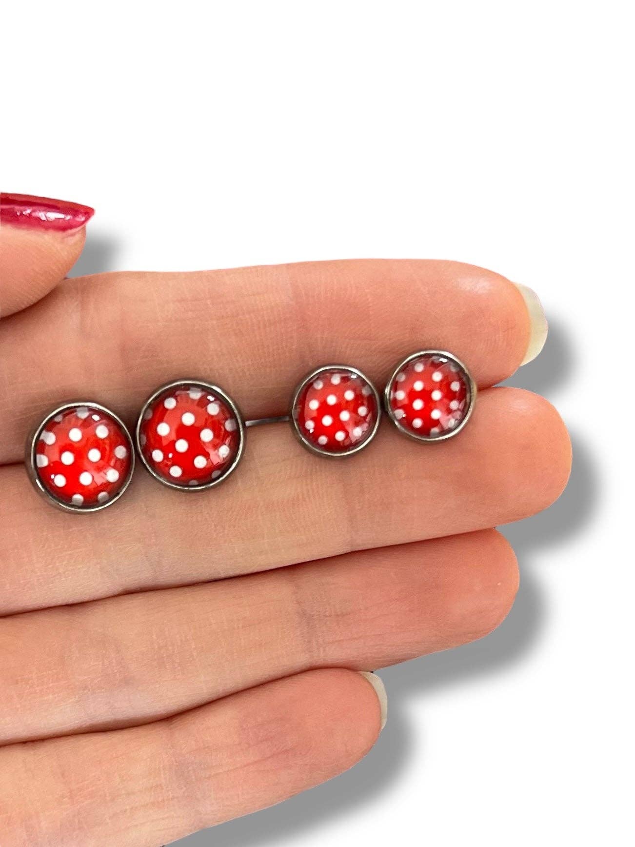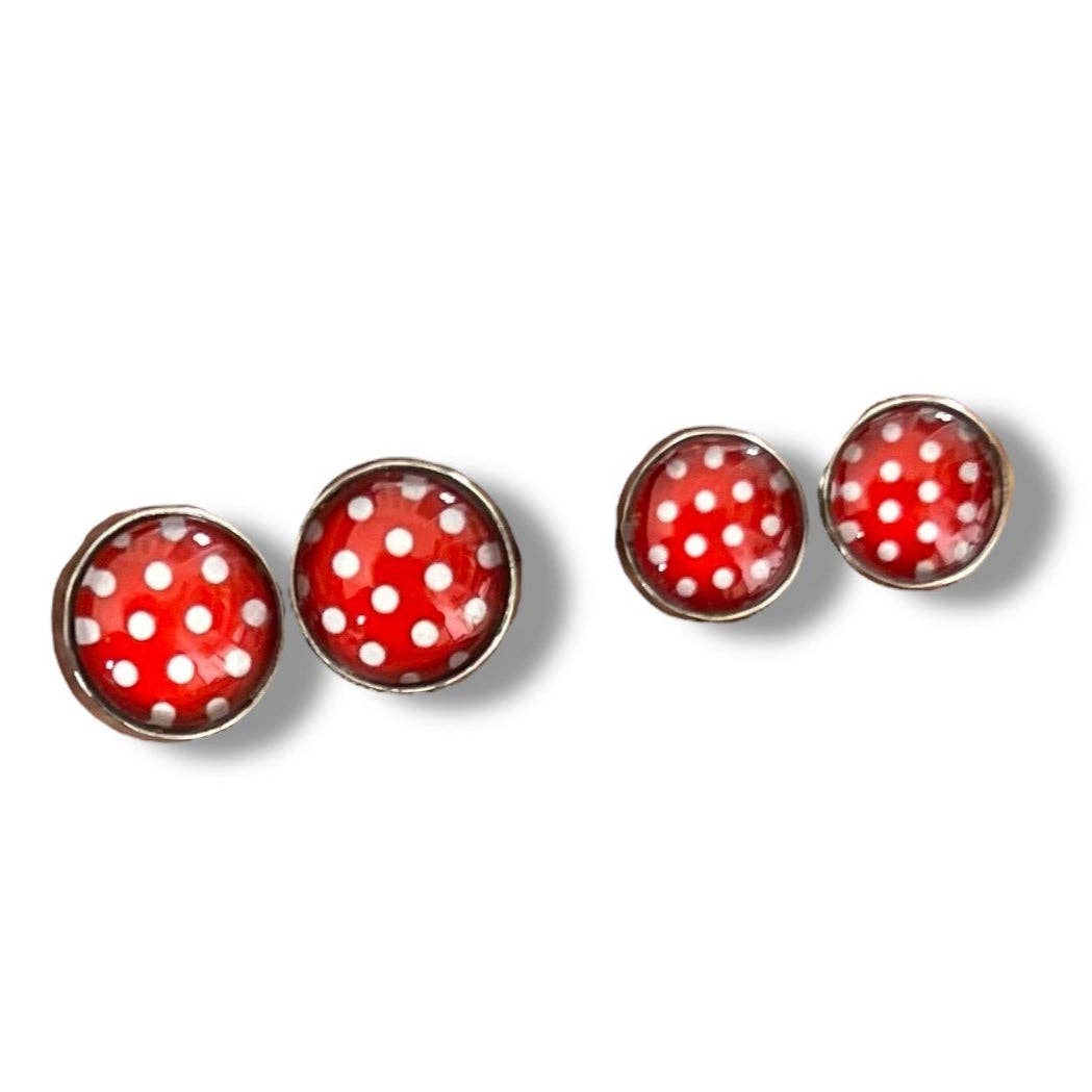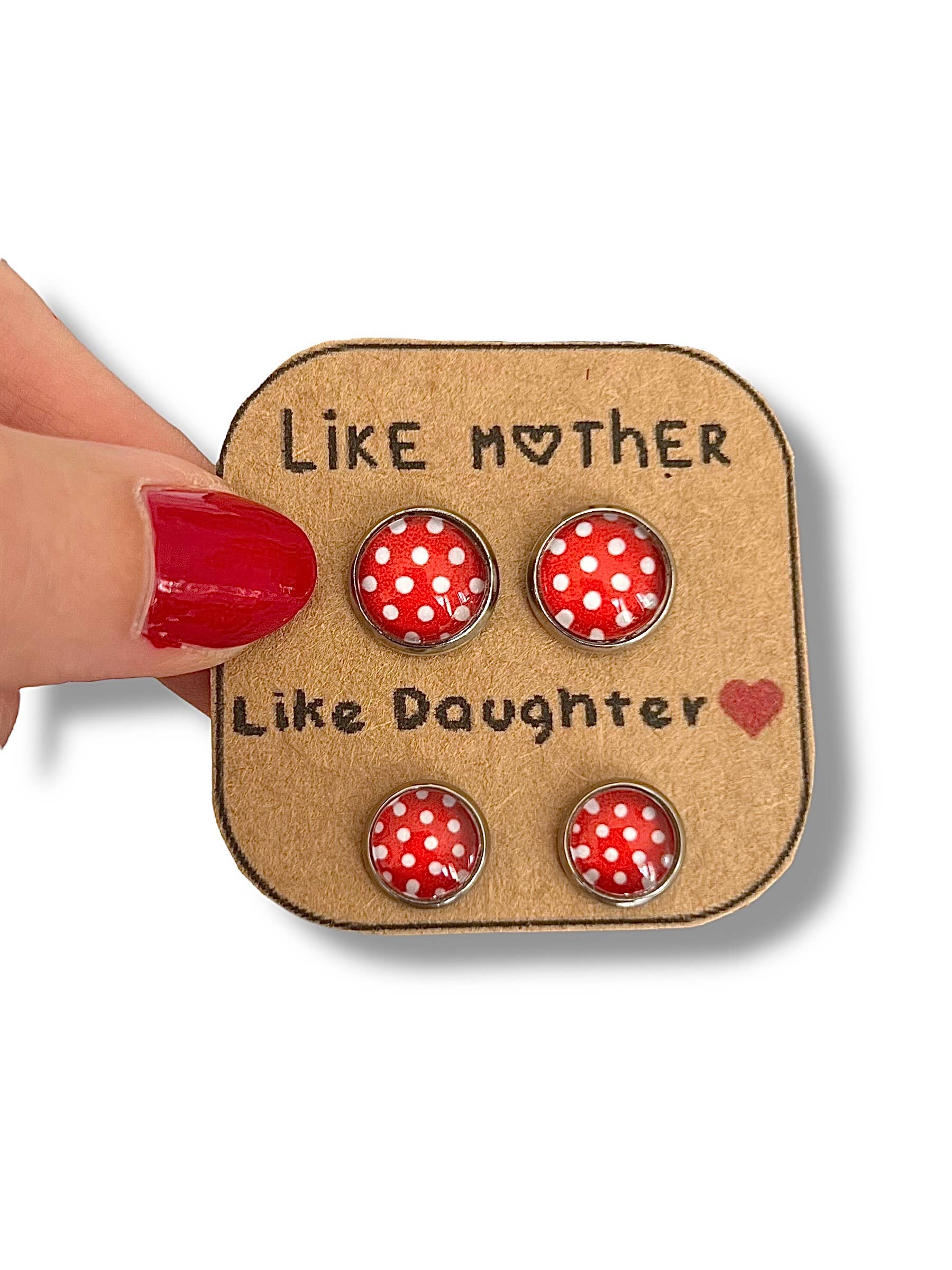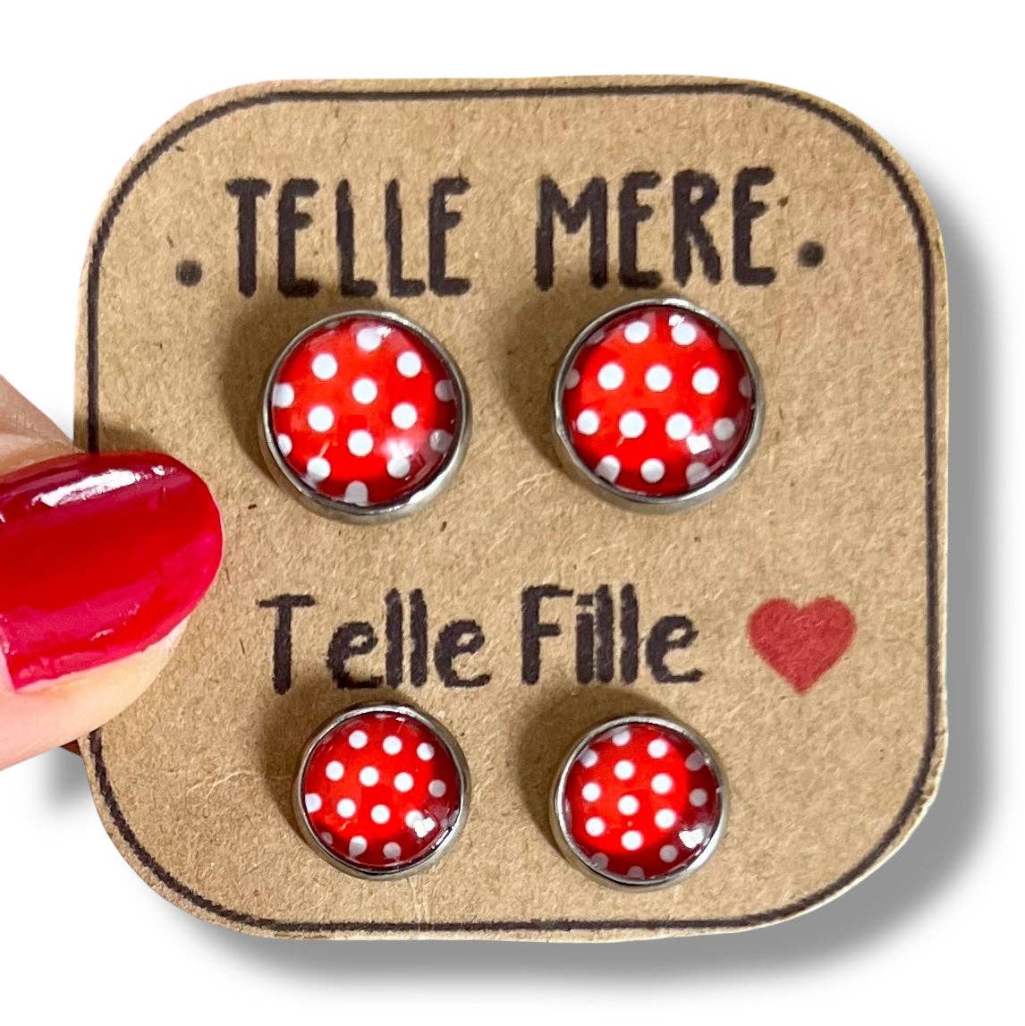 Mutter/Tochter Ohrringe mit roten und weißen Punkten: Français