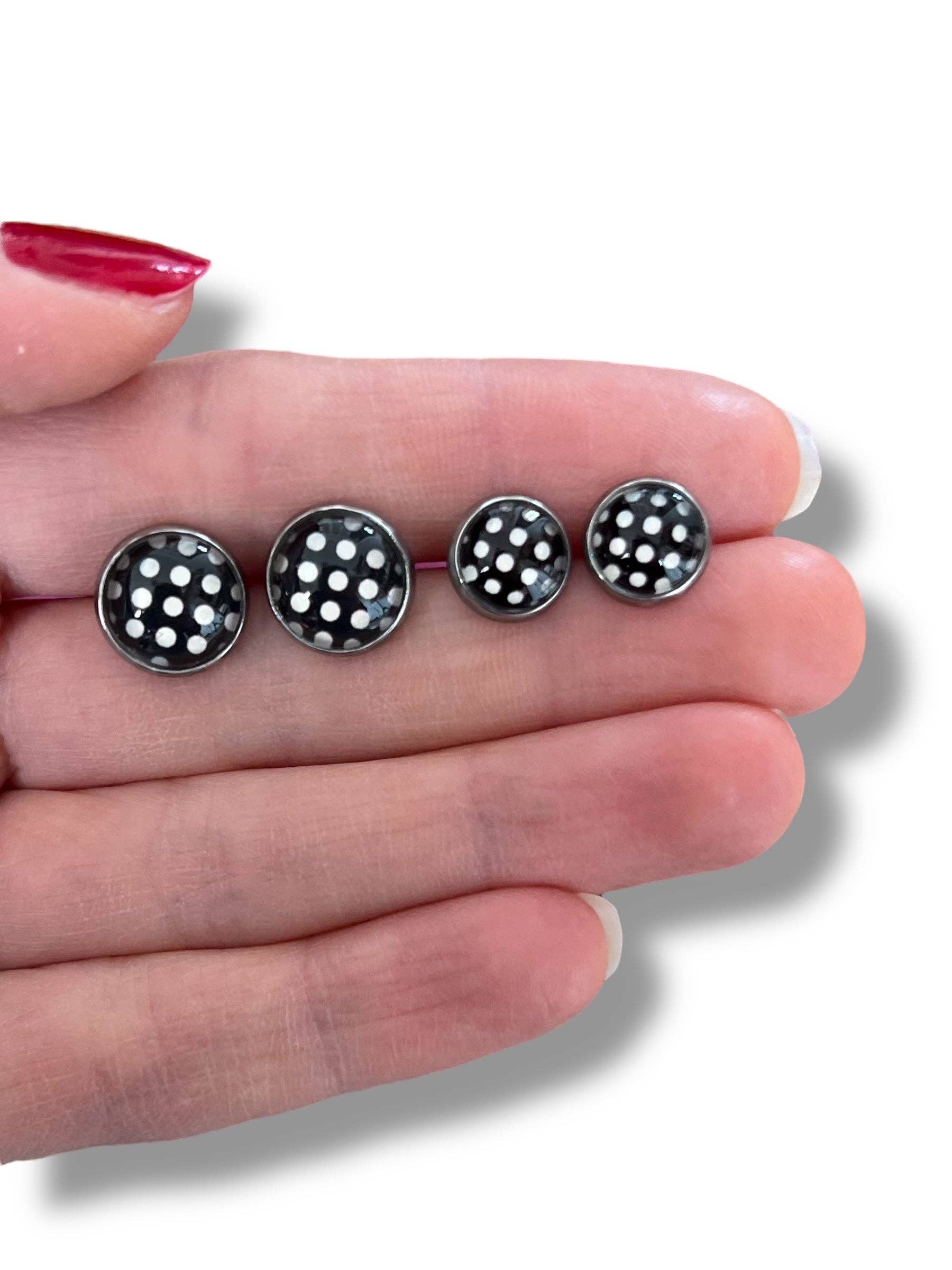Mutter/Tochter Ohrringe mit schwarzen und weißen Punkten: Français