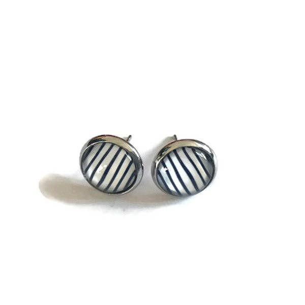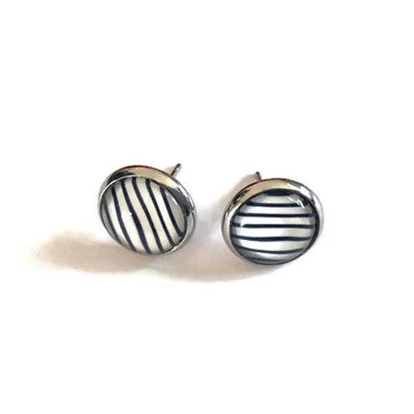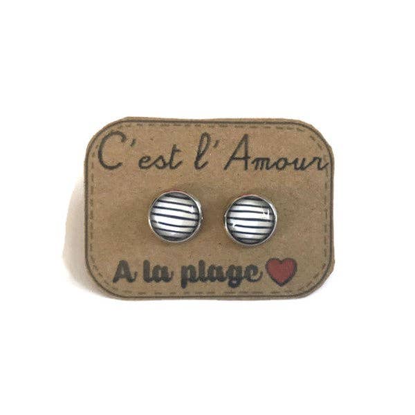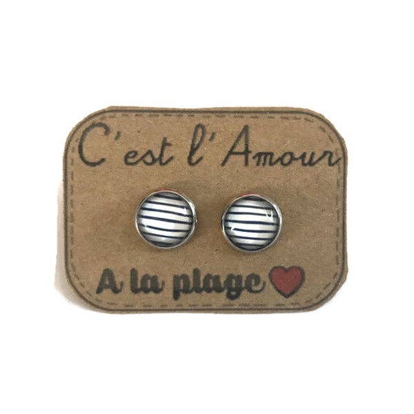 Ohrringe mit blauen und weißen Streifen / "Es ist die Liebe am Strand!": Silber