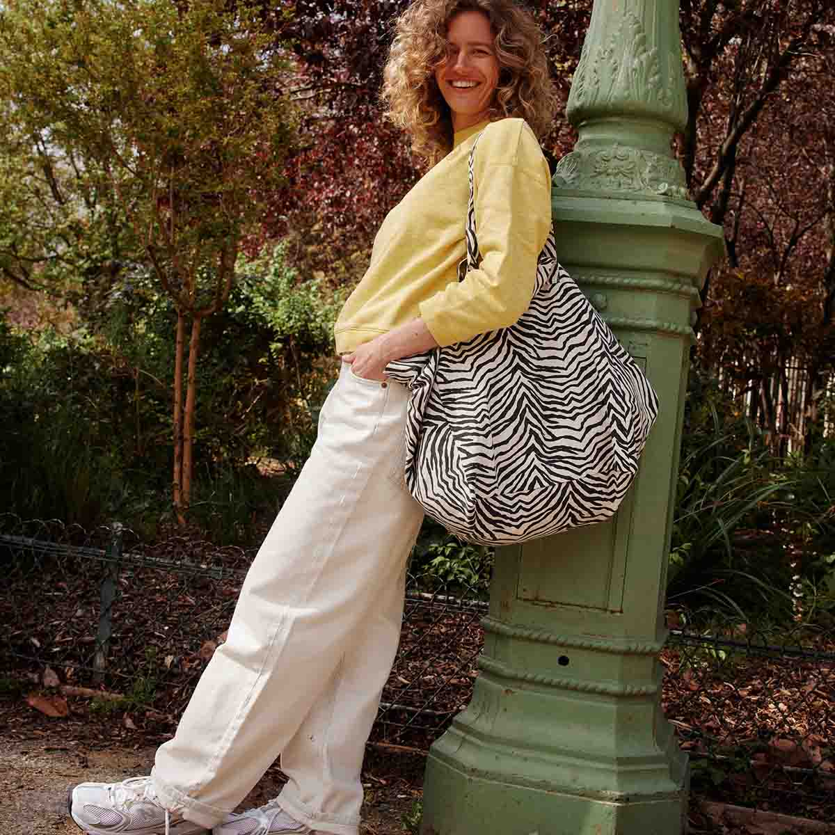 TRAGETASCHE AUS GRAUER ZEBRA-BAUMWOLLE MIT LAVAEFFEKT, 100% BAUMWOLLE DOPPELTER GRIFF GRÖSSE: Breite 34 x Länge 50 x Höhe 62 cm HERGESTELLT IN PORTUGAL, ÖKO-TEX-ZERTIFIZIERT Zusammensetzung: 100% Baumwollsegeltuch