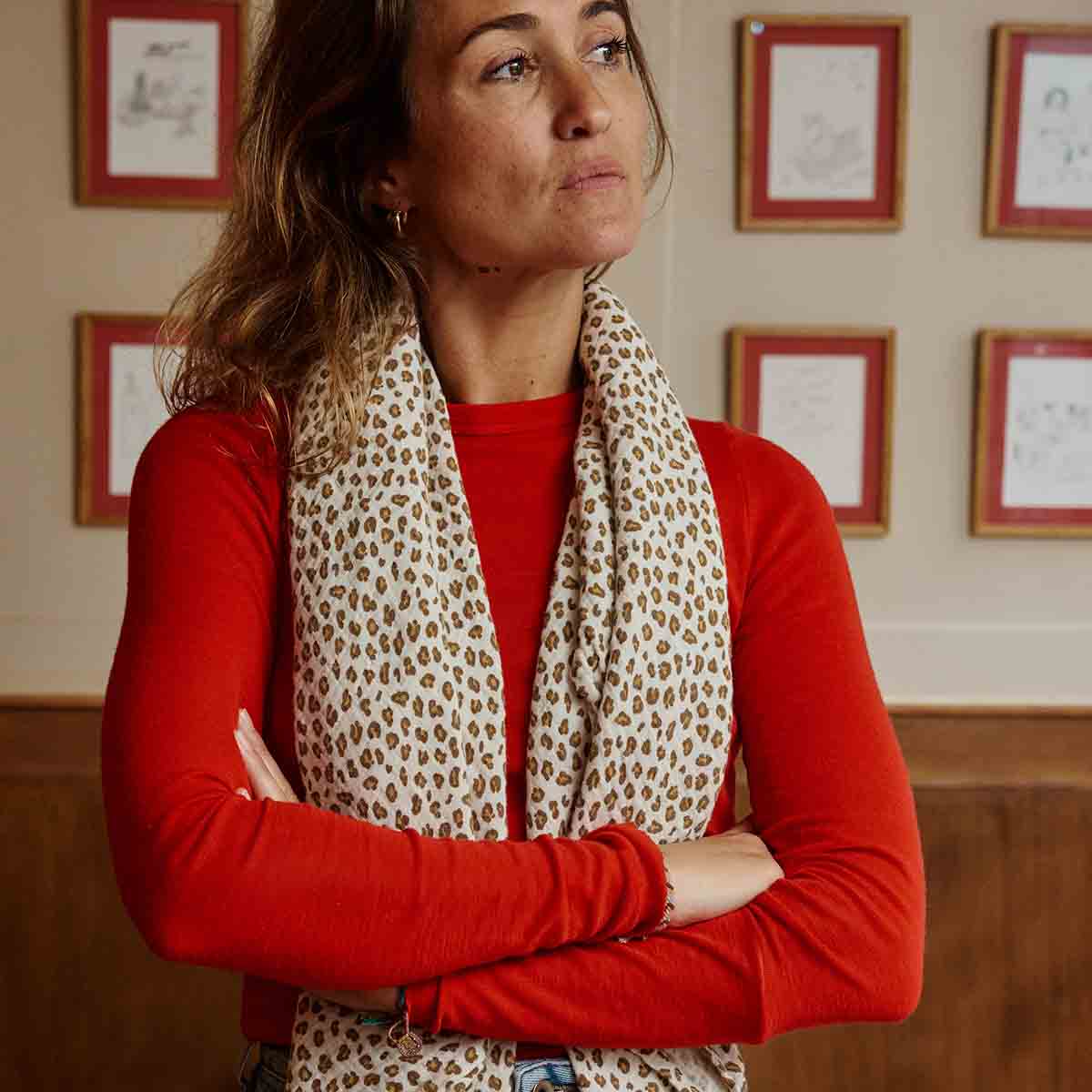 Leicht, stilvoll und zeitlos: Das Rose in April Halstuch mit feinem Leo-Print ist das perfekte Accessoire für jeden Tag.