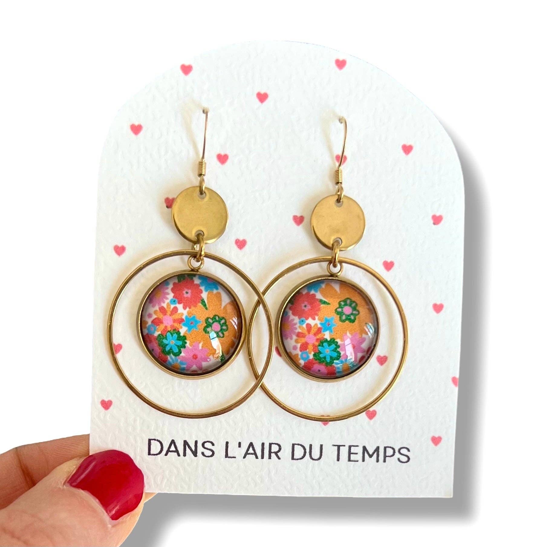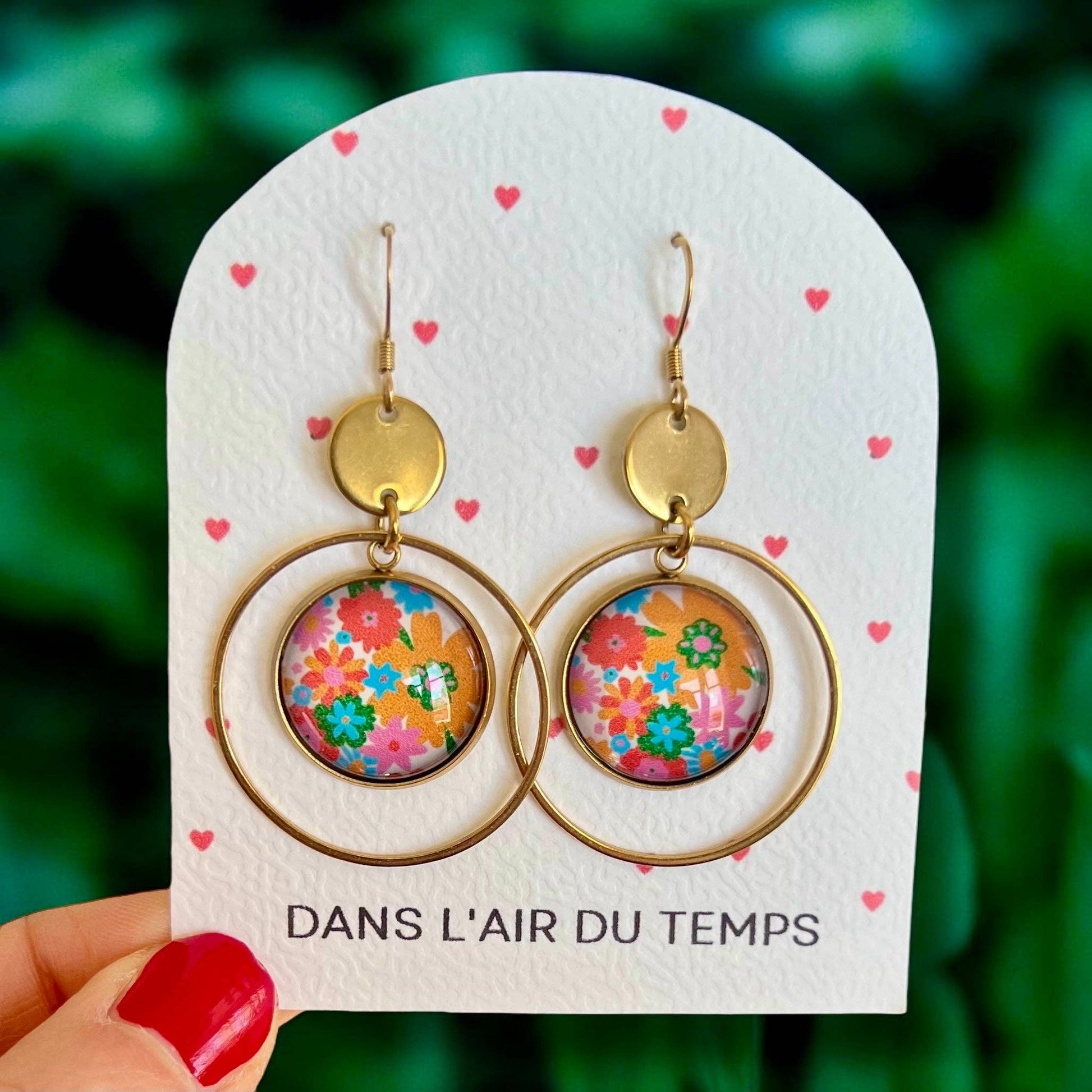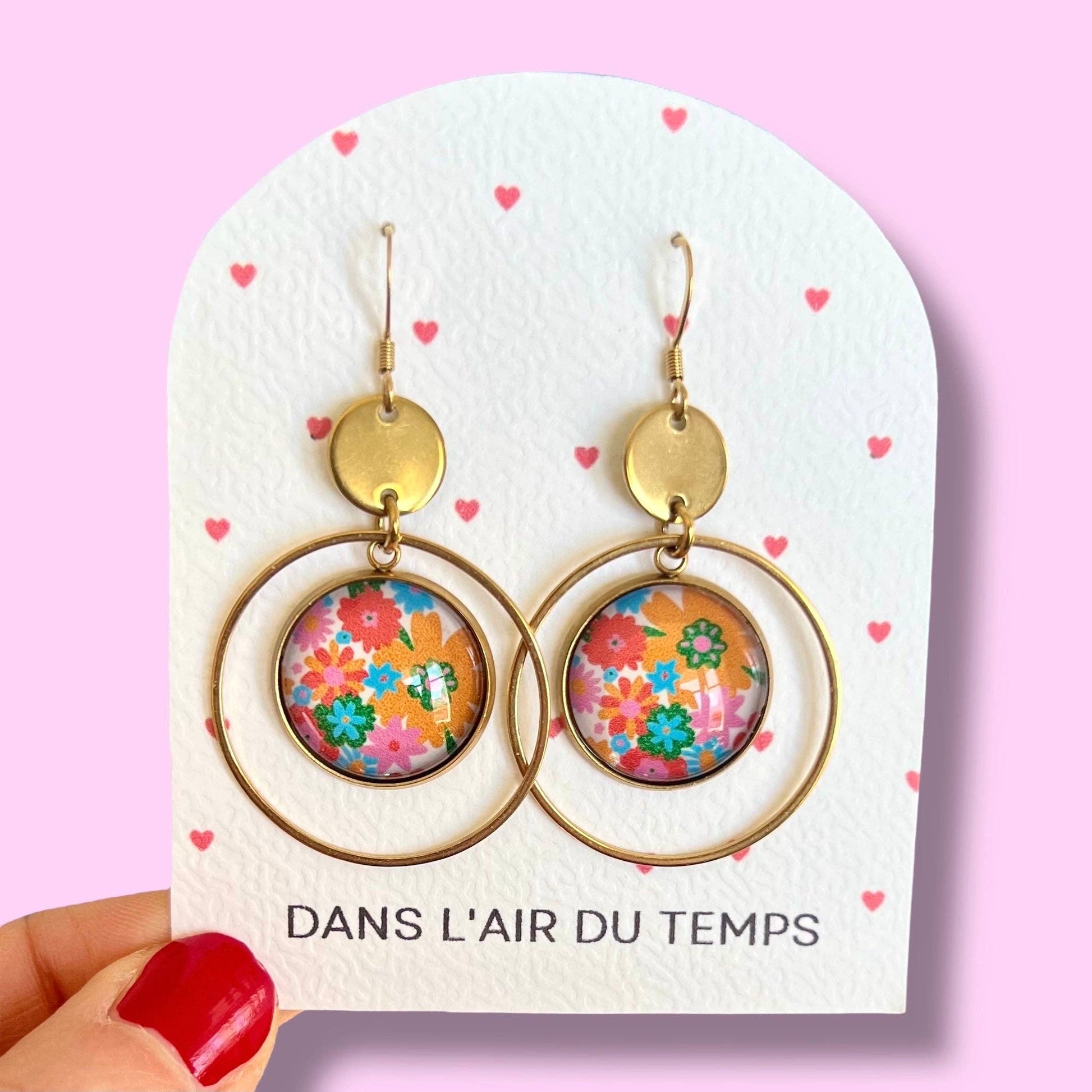 Creolen-Ohrringe mit buntem Blumenmuster ♥