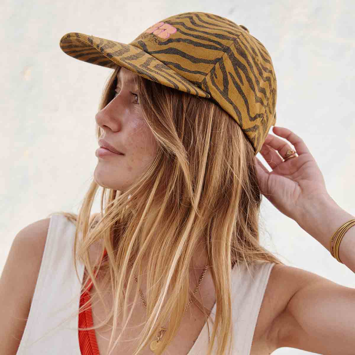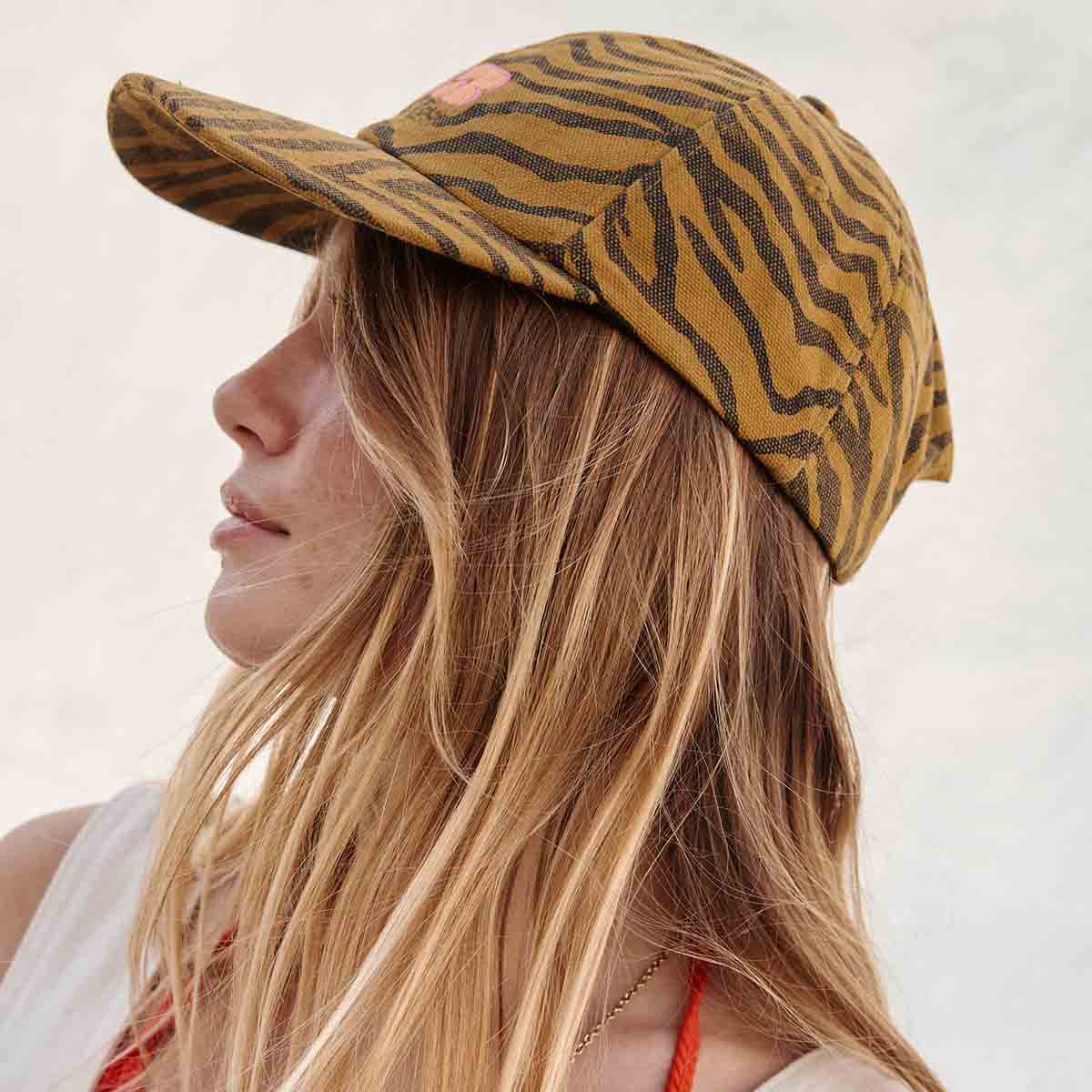 Diese stylische Rose in April Cap setzt mit ihrem trendigen Zebra-Print in warmem Senf-/Goldton ein echtes Fashion-Statement. Das markante Muster verleiht jedem Outfit eine lässige, moderne Note – perfekt für Alltag, Urlaub oder City-Looks. Die Cap lässt sich vielseitig kombinieren und sorgt für einen coolen Akzent zu schlichten Outfits.